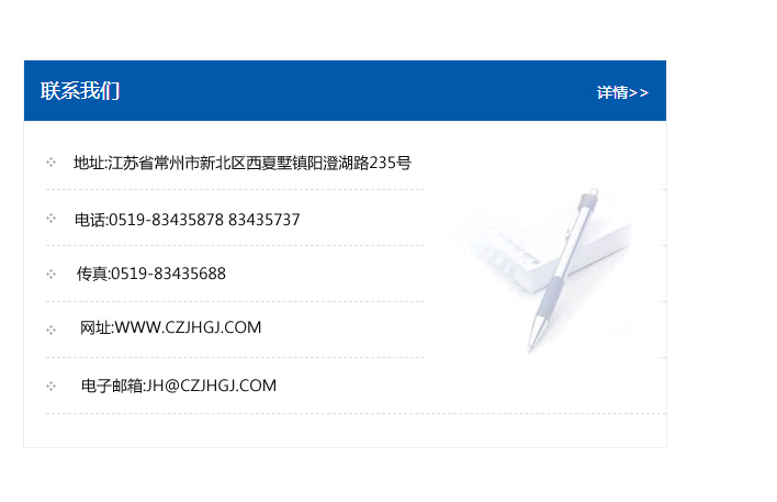 地址:常州市新北區友邦商務大廈1幢16、17層  電話:0519-85101652  傳真:0519-85112595  郵編:213022  網址:www_longcai027_com.952563.com  郵箱:xiajifengaa@163.com